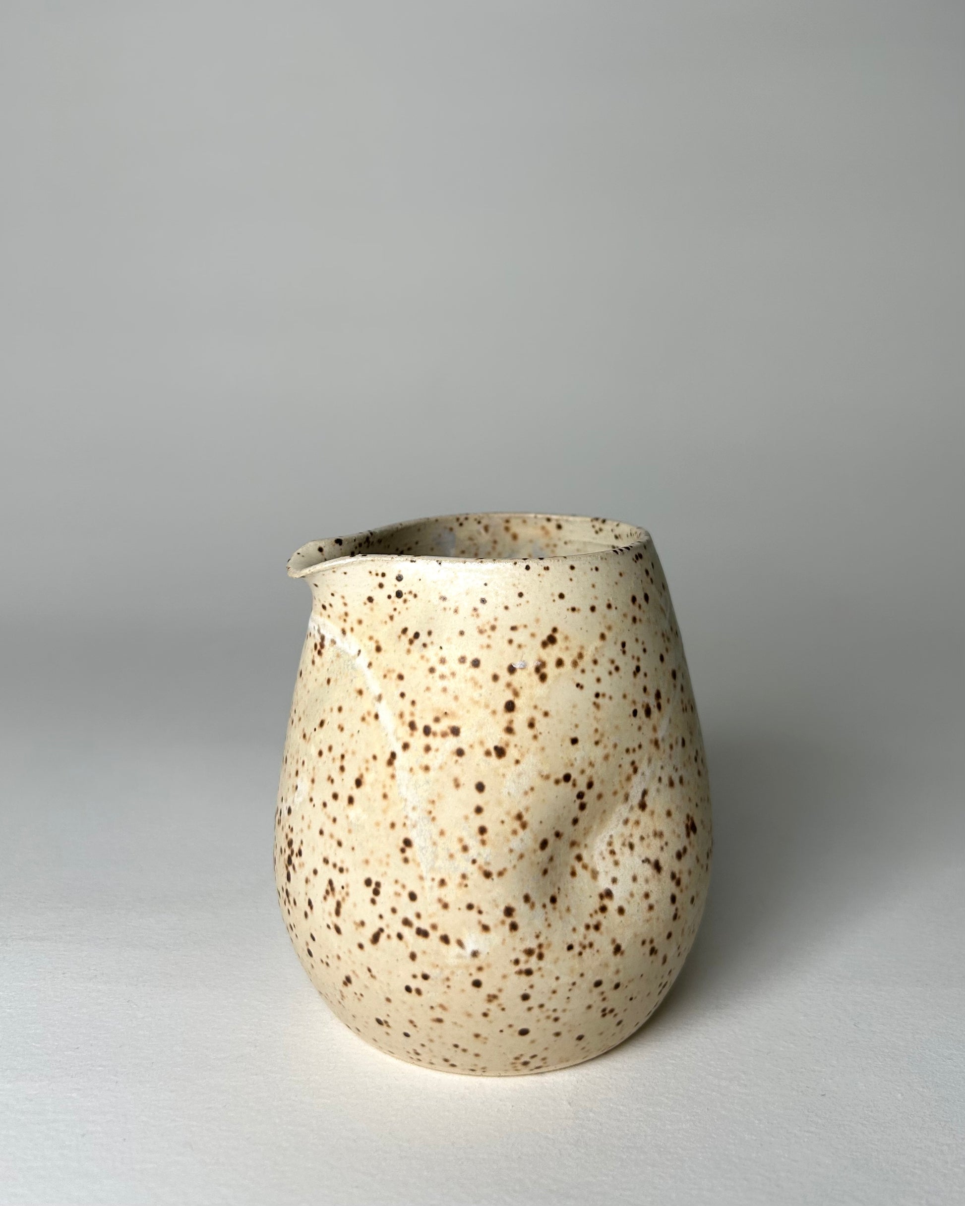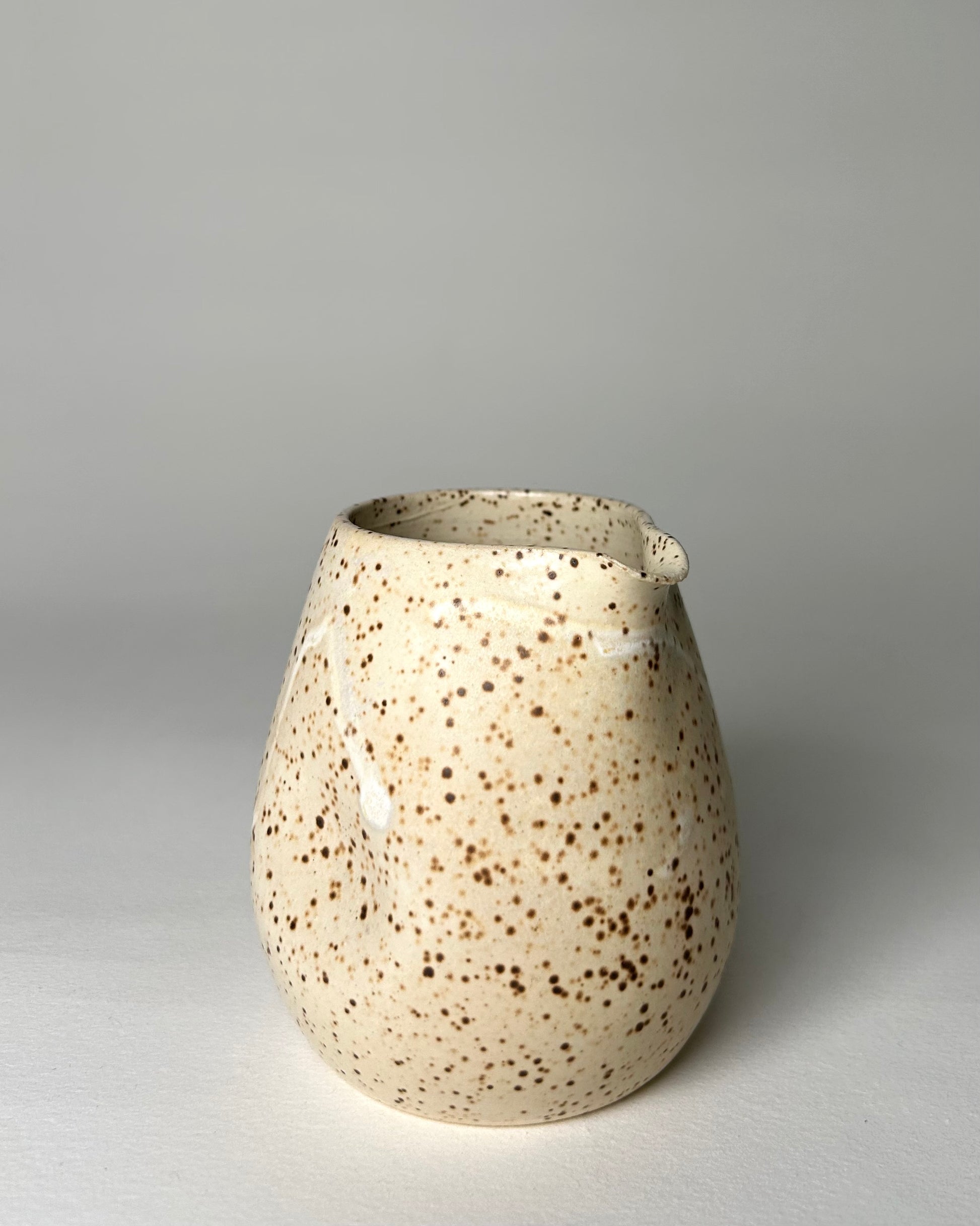 This little pouring pot is both cute and versatile. You have your choice of speckled pink or speckled off white. You could use it as a little bud vase or in the kitchen to pour whatever you wish. Microwave and dishwasher safe.